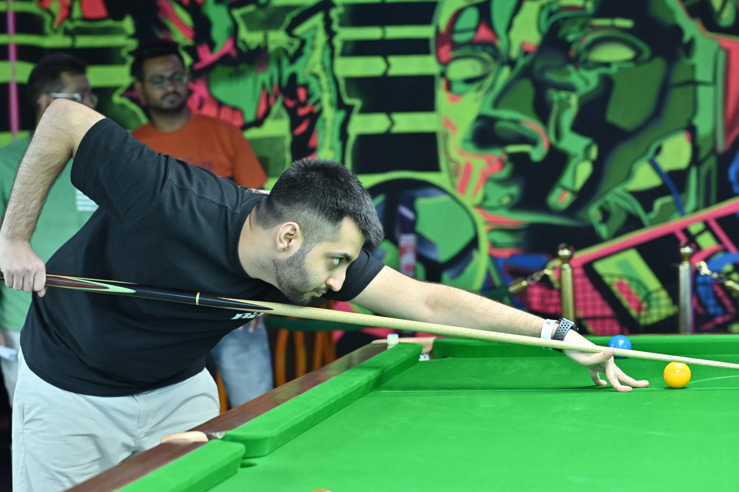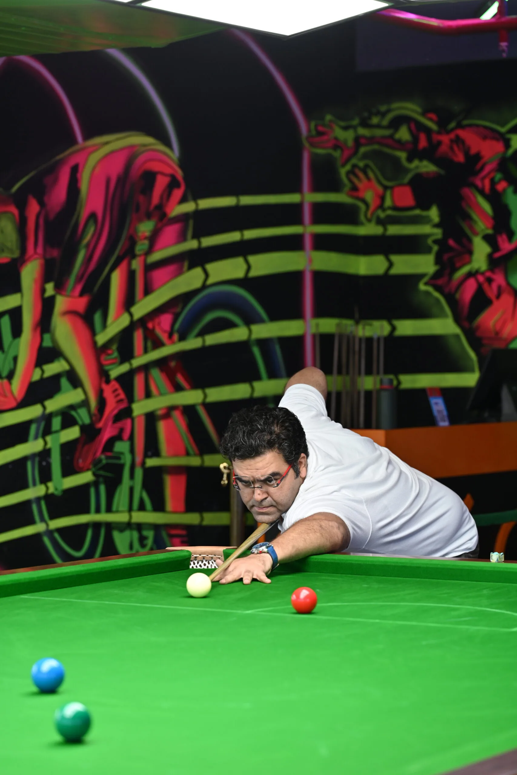 Enjoy an exciting game of snooker in a sleek setting with ambient lighting, comfortable seating, and professional-grade tables perfect for both beginners and seasoned players.